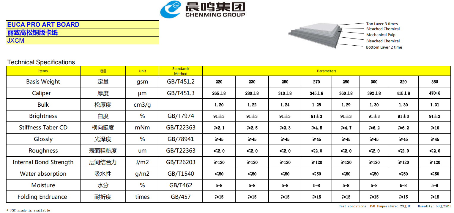 100% virgin pulp, High printing gloss, Smooth printing surface